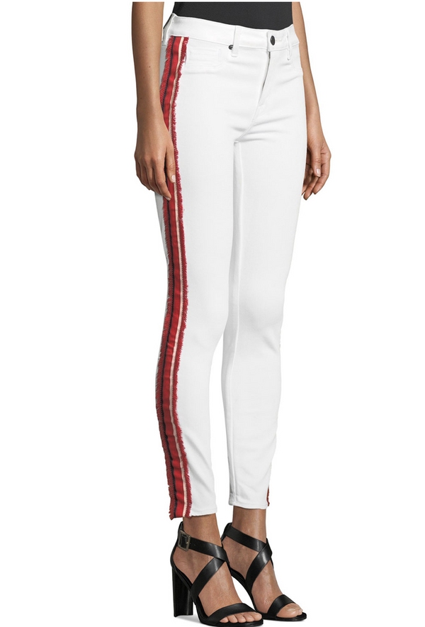 Skinny jean White with Red/Navy Fringed Stripe