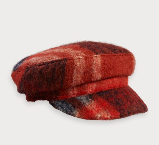 This patterned baker boy cap features a curved brim and satin lining. Patterned Curved brim Satin lining 90% Polyester /10% Nylon
