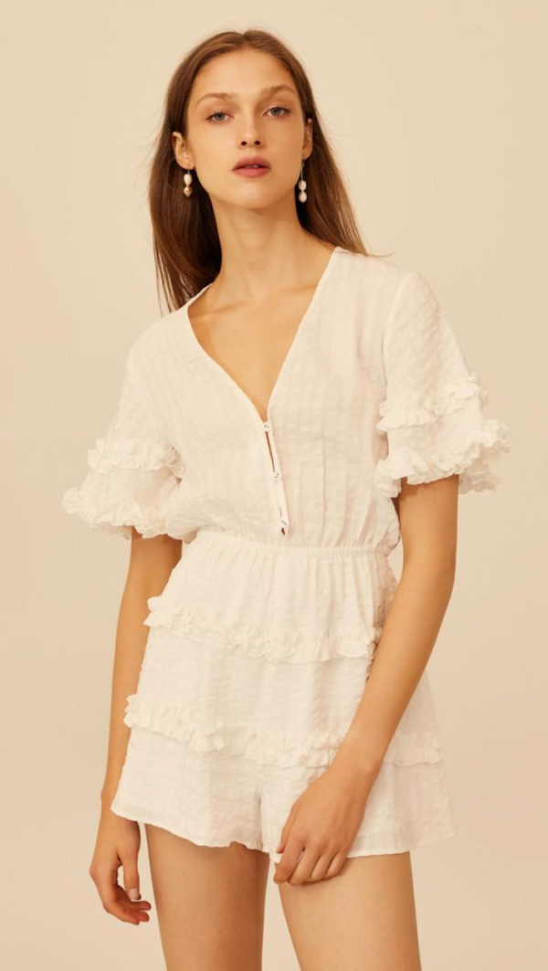 -Elasticated waist -Front button up -Lined shorts -Gathered ruffle detail on shorts and sleeves