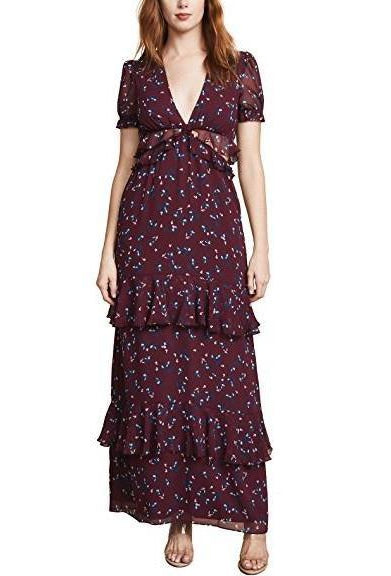 Wayf Lavina Cutout Maxi Dress Maroon Floral